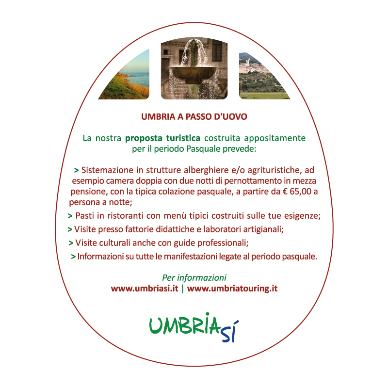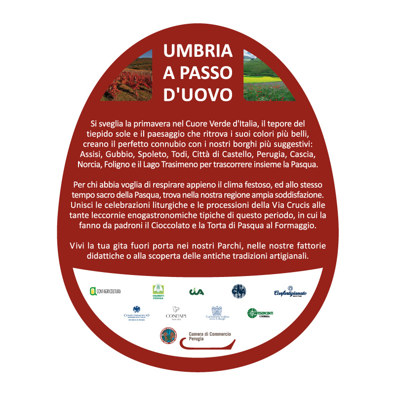 Per chi intende trascorrere le vacanze di Pasqua nel Cuore Verde d'Italia, la Camera di commercio di Perugia offre anche speciali pacchetti turistici dedicati all'Umbria...a passo d'uovo!