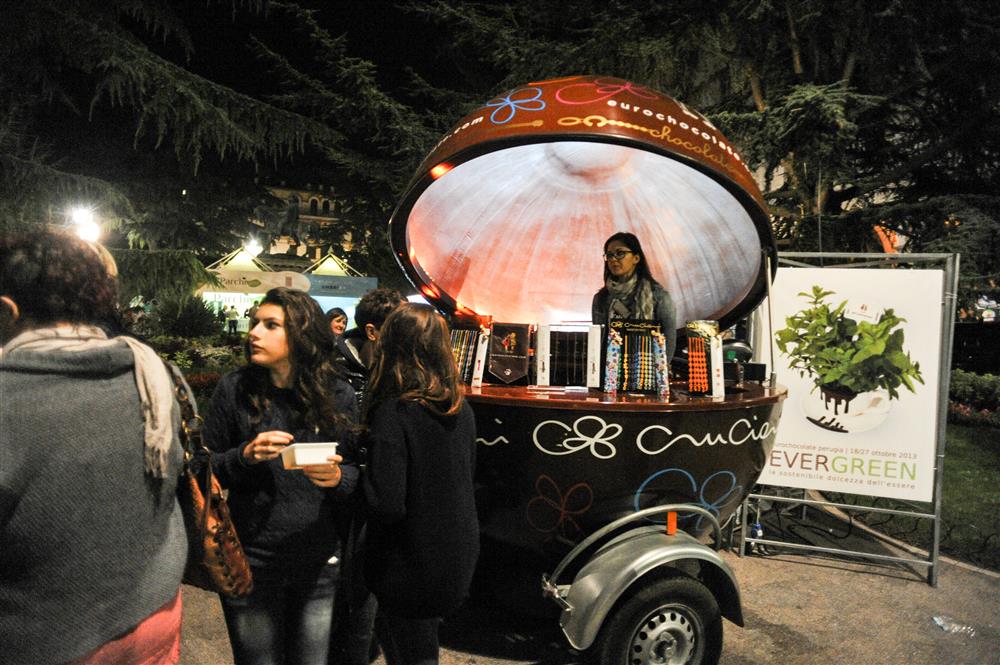 Chocolate è nato dalla preziosa collaborazione tra Eurochocolate e il marchio Cruciani, prestigioso brand facente parte delle aziende della famiglia Caprai e quindi del Cav. del Lav. Arnaldo Caprai che, dal 1955 è alla guida della Arnaldo Caprai Gruppo Tessile, storica azienda produttrice di arredamento tessile e merletto di altissima qualità, 100% made in Italy.