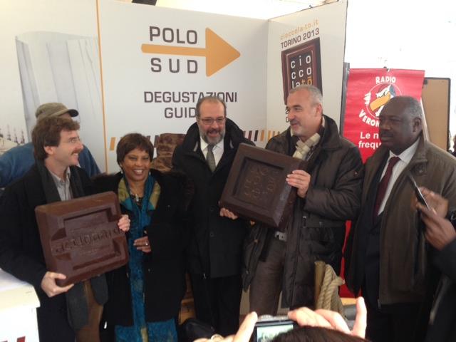 Presenti al taglio del nastro della golosa kermesse torinese, insieme a Eugenio Guarducci, Direttore Artistico di Cioccolatò e Maurizio Braccialarghe, Assessore alla Cultura, Turismo e Promozione della Città di Torino, anche alcuni nomi illustri, a partire da S.E. Janine Tagliante-Saracino, Ambasciatrice della Costa d’Avorio a Roma e Giovanni Pizzale, Console della Costa d’Avorio a Torino.